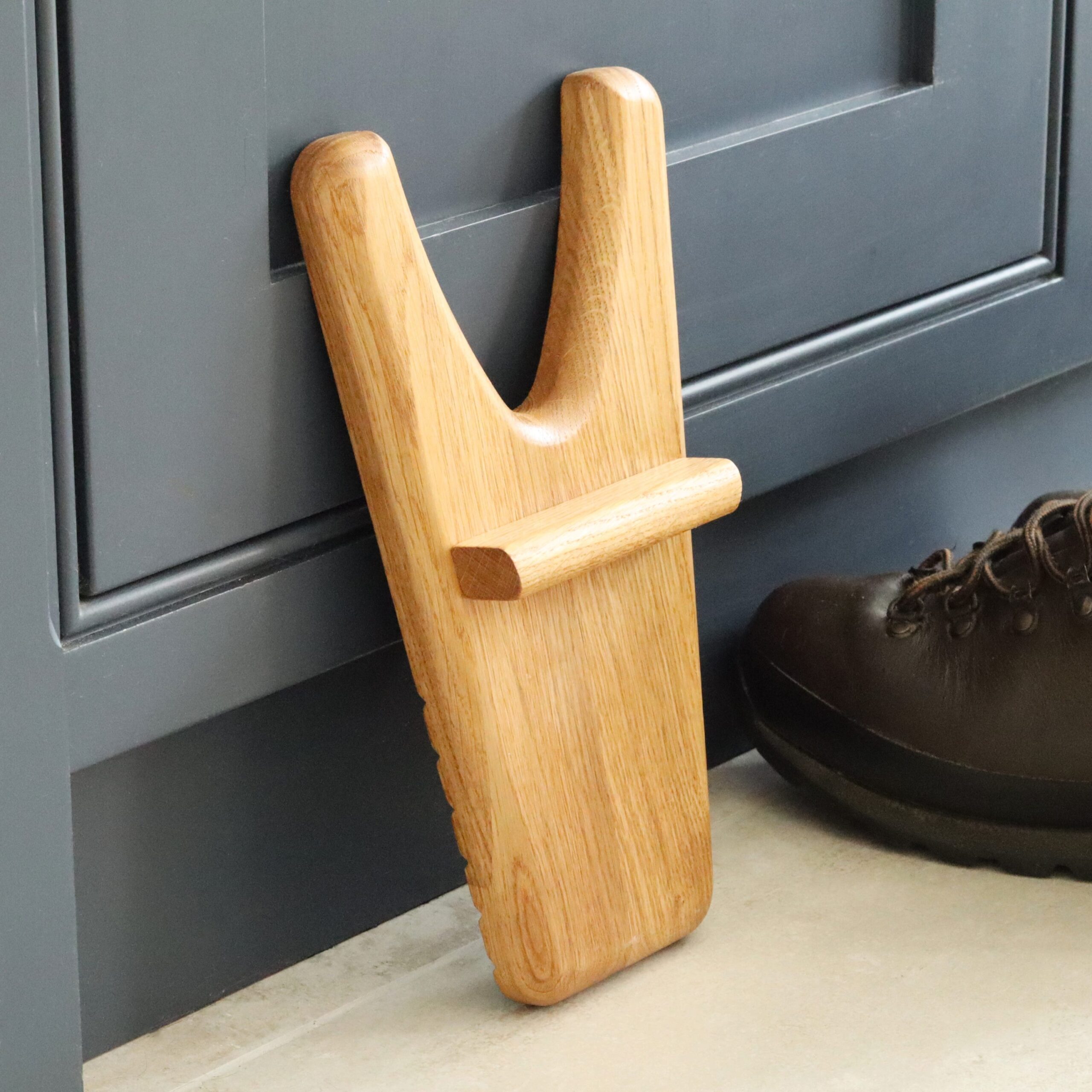 Keep your hallway clean and make removing muddy boots and wellies easy with our handcrafted solid oak boot puller.